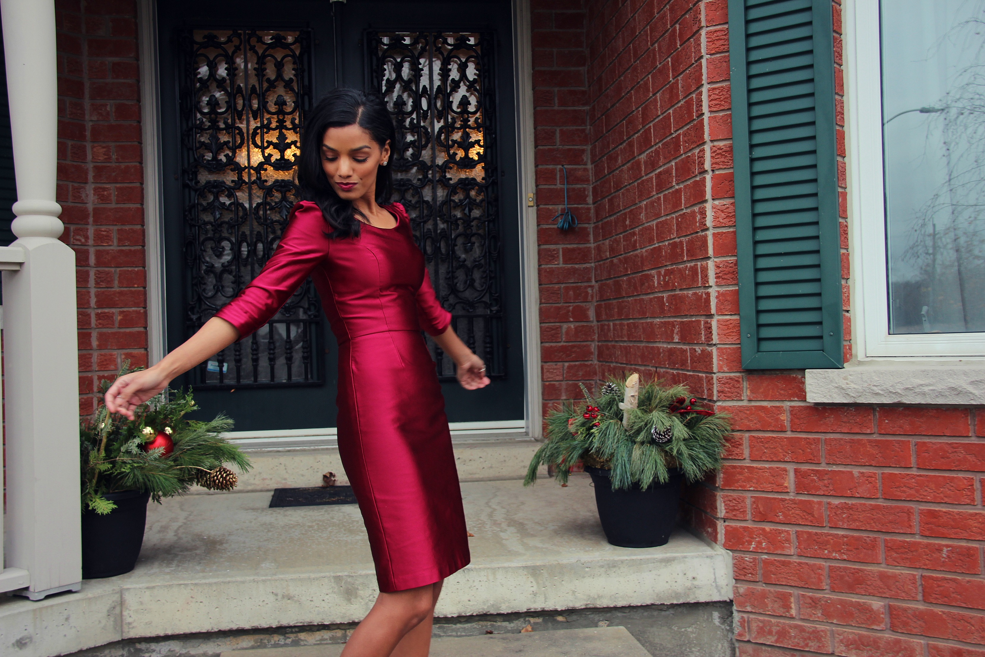 Season’s Greetings everyone! It’s the…eve before Christmas Eve, so I thought I’d share this pretty little holiday look. Made using Simplicity 1650 with the last minute addition of 3/4 length sleeves, this turned out to be my perfect dose of Christmas sophistication!