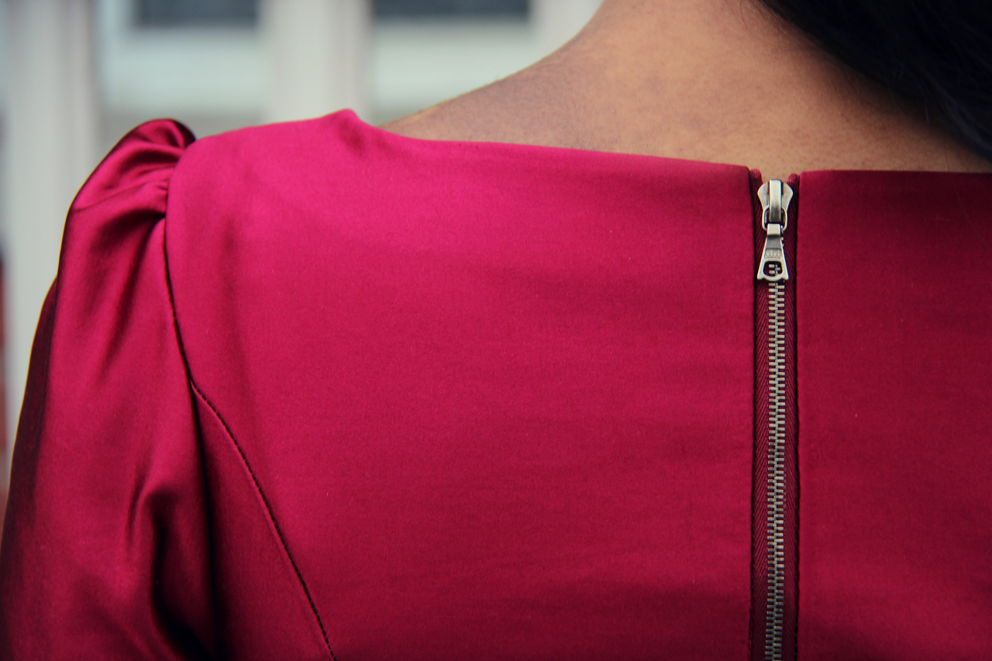 Because I wanted this dress to be nice and snug, there isn’t a whole lot of room to move around in it. See, on one hand, I managed to get the perfect fit (yay!). On the other, the perfect fitted pencil dress in a woven material means it’s definitely NOT means for dancing! I suppose could loosen it up a bit, but then the silhouette wouldn’t be as nice…the things we do for beauty lol! Guess who won’t be eating much in this dress haha!